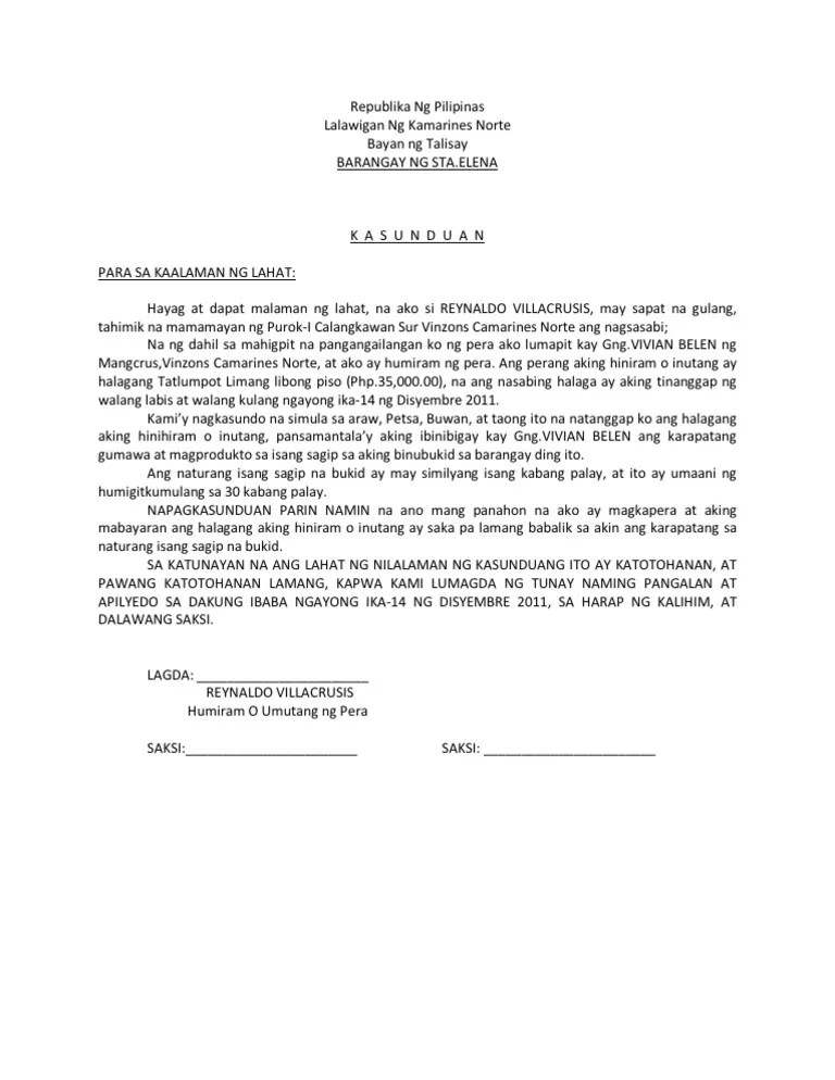 Kasunduan from imgv2-1-f.scribdassets.com Paano magsulat ng isang kasunduan sa komisyon ng independent na kontratista para sa isang negosyo sa online? Nasasaad sa kasunduan ang pagpapalaya sa bansang cuba, ang paglilipat ng pamumuno sa estados unidos sa. Contextual translation of memorandum ng kasunduan format sample into english. How to get married to a malaysian muslim if. Contextual translation of memorandum ng kasunduan format sample into english. Kasunduan sa pagpapaupa ng lupa sample. Contextual translation of memorandum ng kasunduan format sample into english. Kasunduan sa paggamit at pahintulot sa paggamit ng jw.org website.